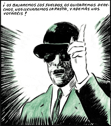¿Por qué todo esto? Se preguntan algunos. Esta viñeta de Borges creo que describe lo que está pasando, es duro leerlo, es duro verlo, es imposible ignorarlo, y evidentemente es algo que todos conocemos, pero ahí parados hemos estado, y ahora que esto ha empezado y es el principio, será muy difícil de parar, porque todas las acciones que realizan son las contrarias a las que se tenían que hacer. (Me recuerda al caso de como Nestlé censuró la campaña de GreenPeace y el vídeo de nestlé que no quiere que veas fue uno de los más visto). Hace dos días decían que era pasajero, ayer se habló de vértidgo y hoy tienen miedo, porque ven que nosotros no tenemos miedo porque no tenemos nada que perder, no tenemos trabajo, no tenemos casa… lo único que tenemos somos a los amigos, que están también con nosotros.