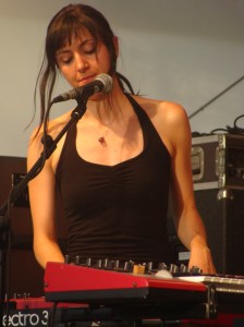 Javiera Mena presenta un formato simple, pero rico en sonidos, una artista con su propia «movida» que plasma en sonidos y lo más importante para un festival que te hace bailar, la verdad, es que no deberían de haber tocado en el pequeño, porque para la hora que era, sería un genial arranque para uno de los escenarios grandes que había, un no parar de bailar. Al finalizar el post pondremos algunas fotitos más de este concierto, que mereció la pena. Eso es la ventaja de los festivales que conoces a grupos, ves en directo e incluso te sorprenden, aunque decir que en lo grabado la voz de ella es más espectacular, pero ofrece diversión así que no pidamos más.