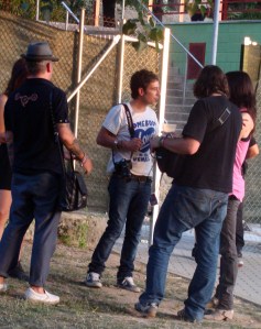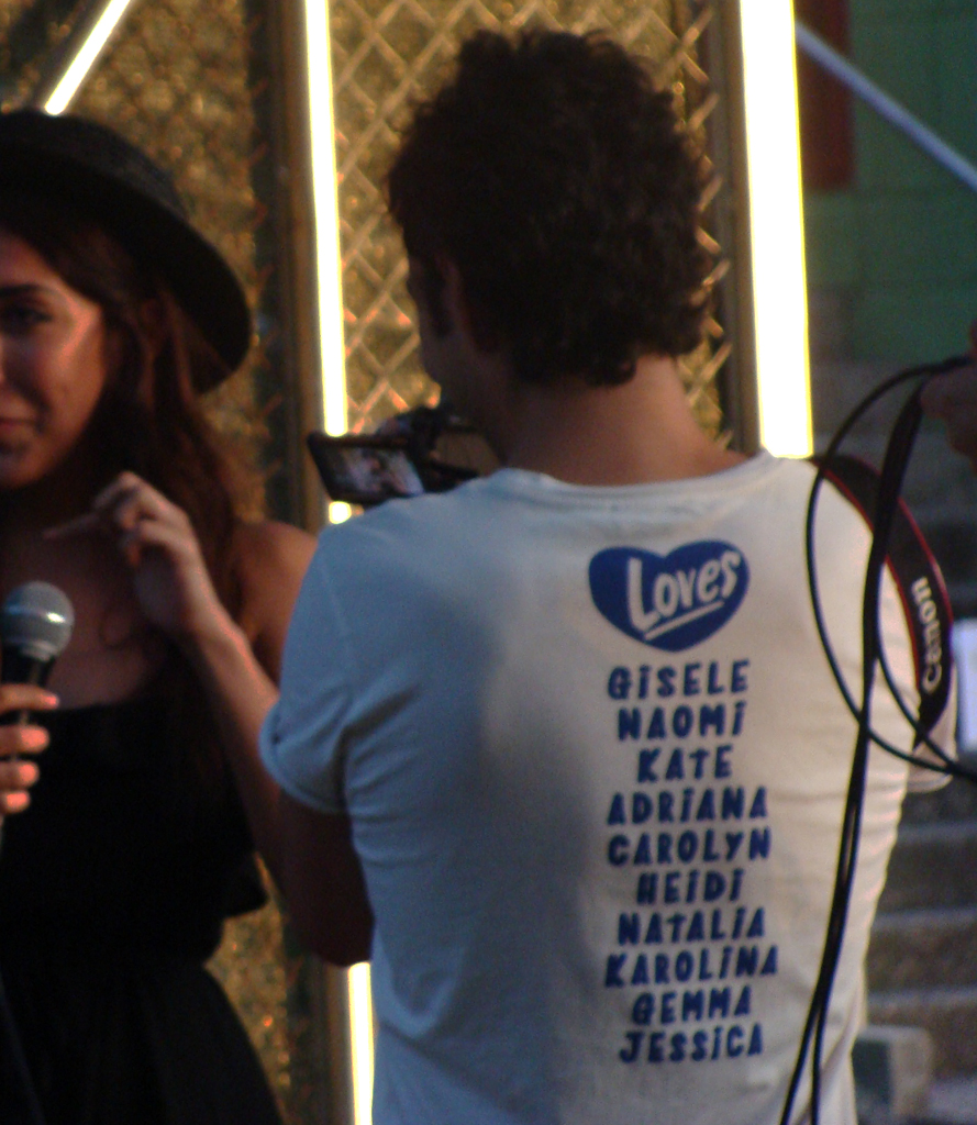 El último The Right ons con quien nos cruzamos fue con Álvaro, que estaba trabajando en el terreno de lo audiovisual, para allá y para acá, sin perder detalle, atado con su «super» cámara de fotos y supongo que su trabajo lo podremos ver más adelante, porque grabó una entrevista a Polock…(que seguro que merece la pena), y también a Annie B. Sweet, además de las fotos que realizaría. Su camiseta nos da la razón cuando en el «cuore» lo llamamos el Rompecorazones.