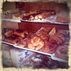 Entre un mostrador lleno de cosas, porque estaban recién colocadas, recomiendo los triángulos de chocolate, aunque hay que decir que los croissants también saben bien, aunque me gusta todo, soy bastante dulce, pero en gusto, luego en la realidad como que no tanto. xD