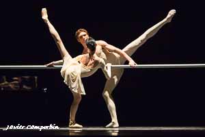 Continuamos con un clásico al más puro estilo clásico, que coresponde a la foto que hemos colgado. Un piano, elegancia, una pareja sincronizada, perfeccionista, elegante y jugando con el elemento esencial en una clase de clásico, la barra. Dentro de las 2 horas de espectáculo, estos 15 minutos me parecieron deliciosos.